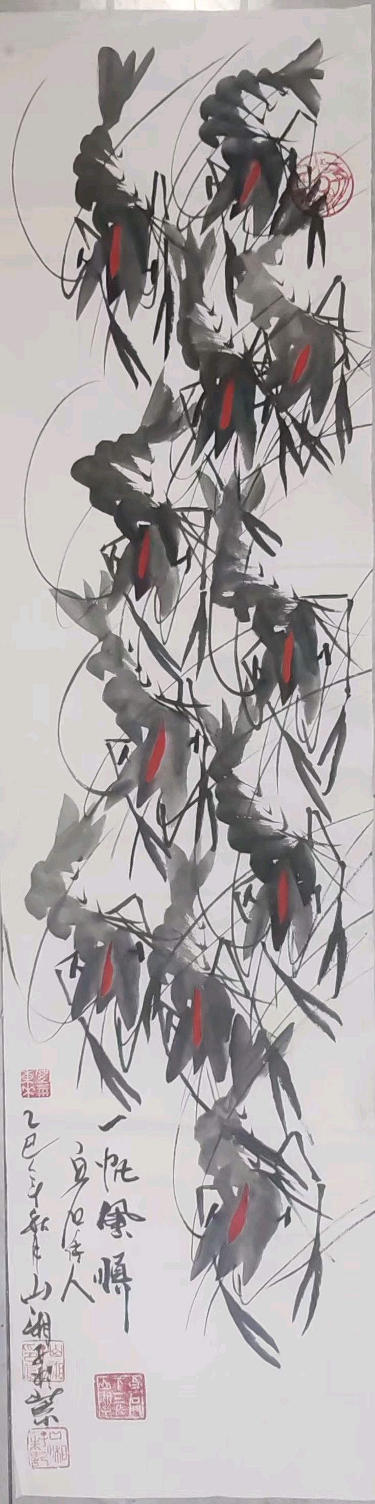 在传承经典的同时,山湘子老师不断探索创新。他大胆尝试将现代构图理念与传统笔墨相结合,赋予虾画新的时代气息。其作品《群虾戏水》《荷塘清趣》等,既保留了传统水墨的韵味,又融入了当代审美意趣,在国内外展览中屡获殊荣,深受藏家与艺术爱好者的青睐。