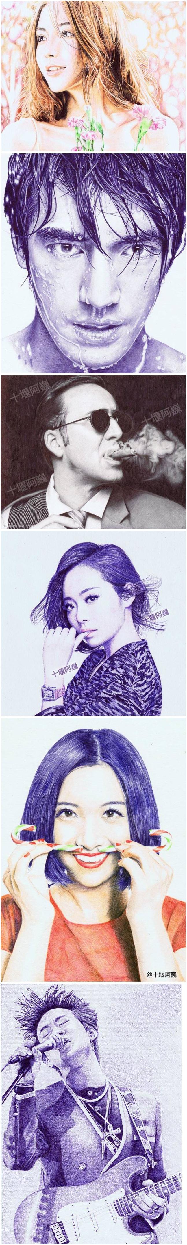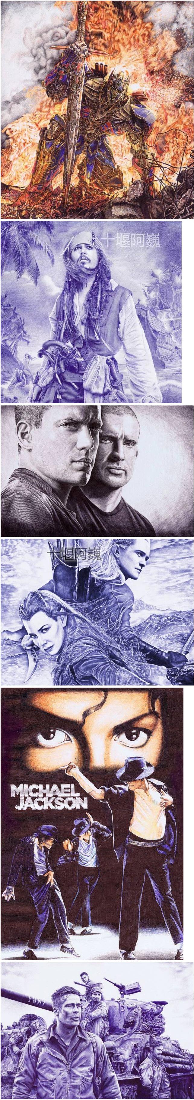 你能想像这些都是用圆珠笔画的吗?简直比大片海报还要帅!